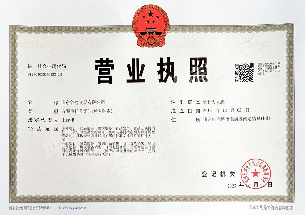 山東谷淦食品有限公司總部位于山東省淄博市,是一家集生態化農業種植、中草藥種植、農副產品加工、商貿物流、營銷服務于一體的農業產業化省級重點龍頭企業,從生產到終端,構建農工商高度融合、一二三產業相互支撐的現代化經營體系。集團公司主要產品包括谷物飲料、植物蛋白飲料、八寶粥、奶昔及果汁飲料、中式養生飲品等系列方便食品,旗下擁有“谷淦”、“福粥來”、“頤慕”、“甘噸噸”、“妃生元”、“植豆說”等眾多品牌。